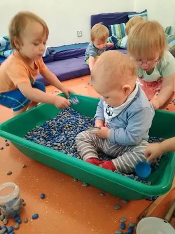 Einmal wöchentlich öffnen wir alle Krippengruppen, um den Kindern Kontakte zu anderen Kindern und Erzieher:innen zu ermöglichen.